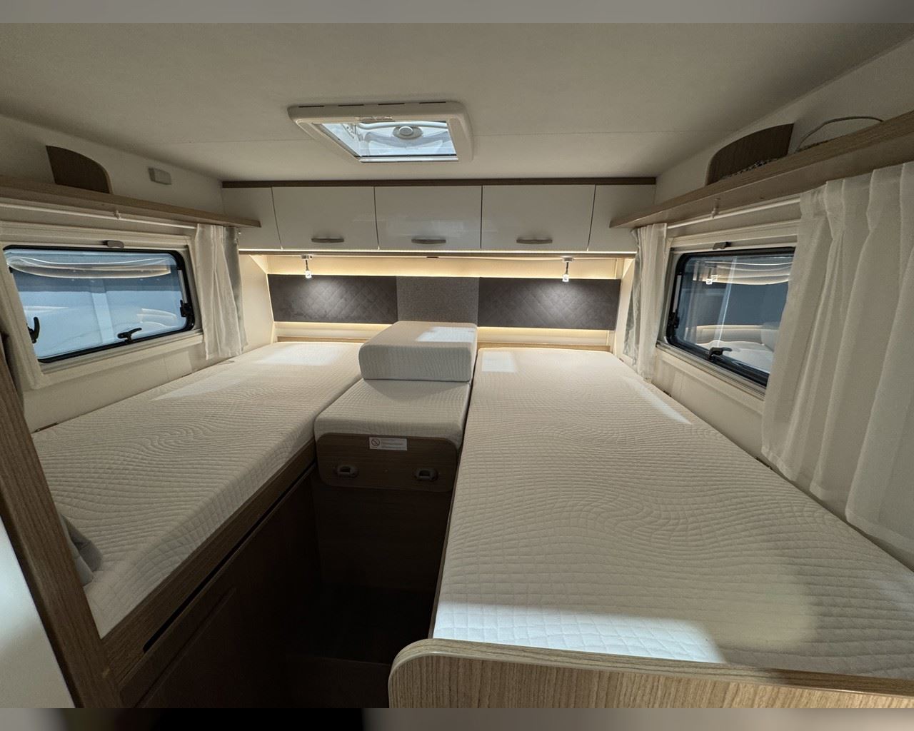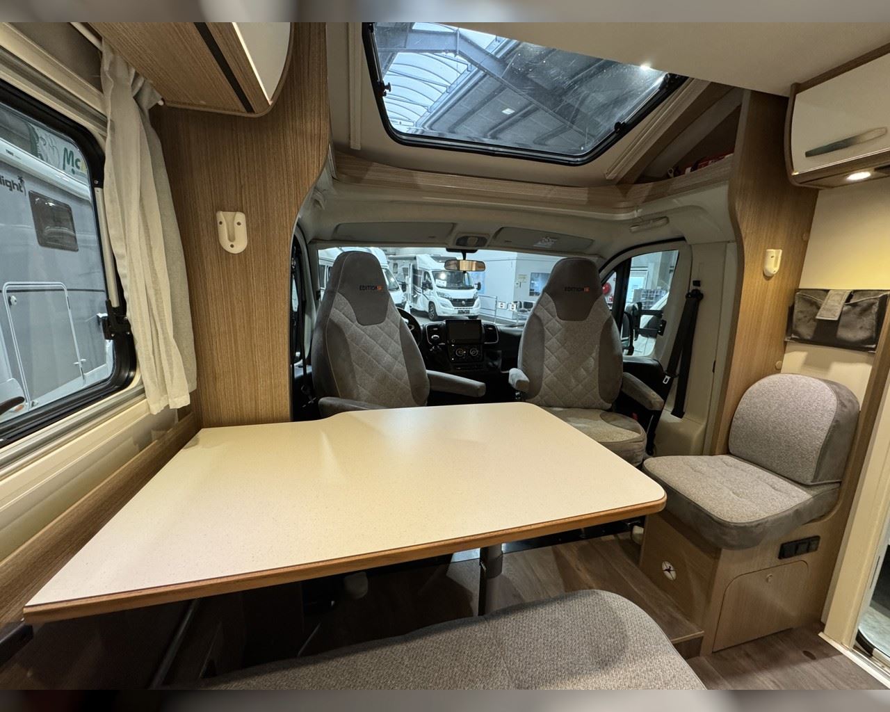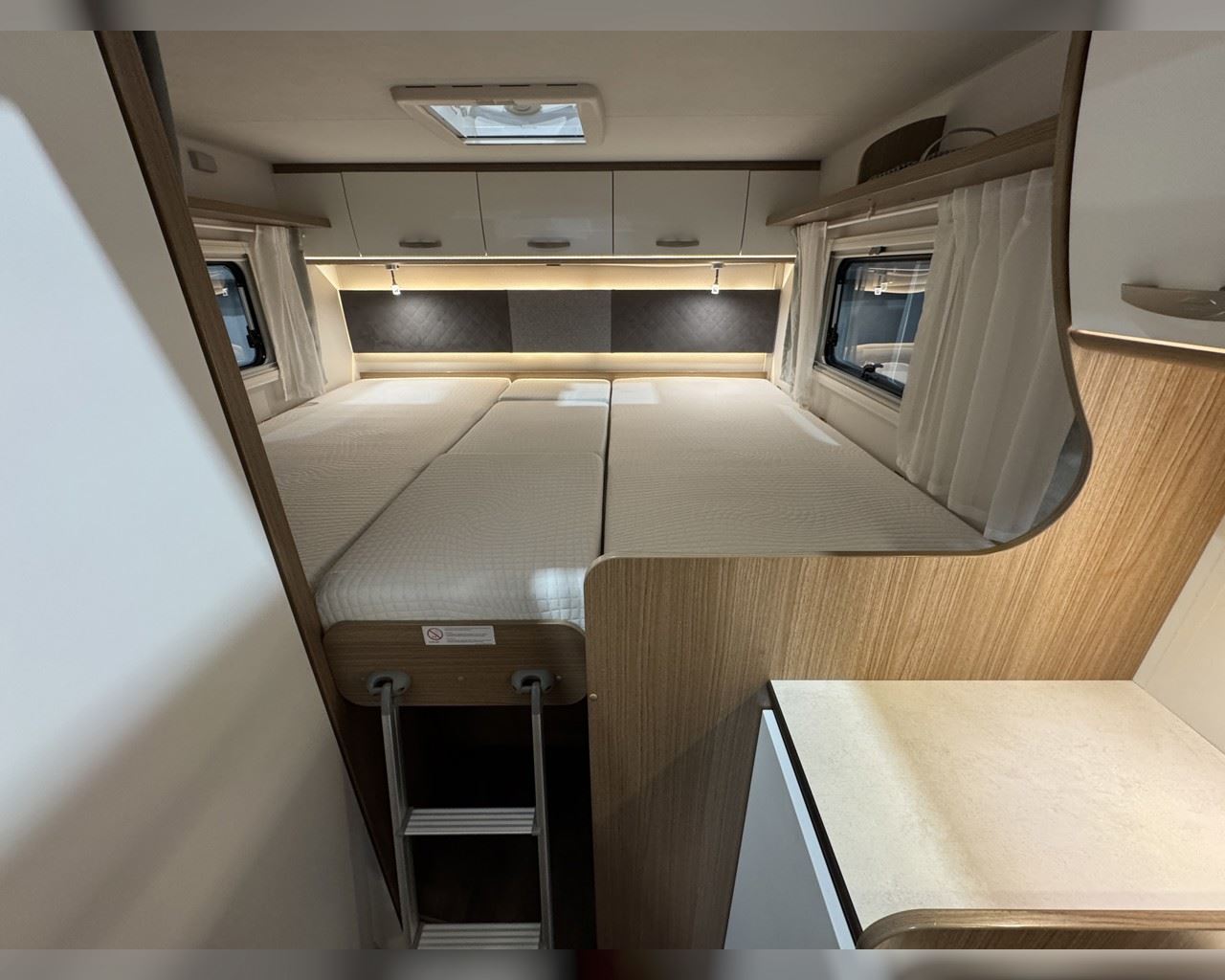 Kaupauki fylgir þessum bíl - 200W sólarsellupakki með ásetningu að verðmæti 136.000 kr. Bakkmyndavél, leiðsögukerfi, sólskyggni (markísa), hjólagrind, lestarlúga báðum megin, gluggi í hurð, aðskilin rúm með útdragi á milli, stór sjálfvirkur ísskápur, fellirúm í toppi, LED lýsing, cruise control, snúningsstólar, loftkæling, 16“ álfelgur o.fl. Lengd: 6,96 m. Breidd: 2,32 m. Hæð: 2,93 m.