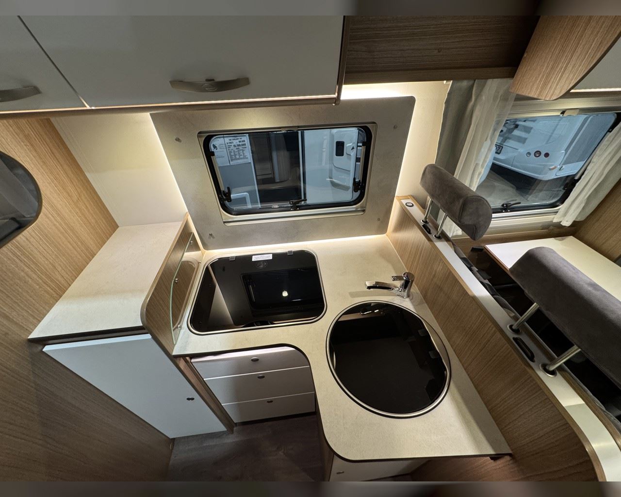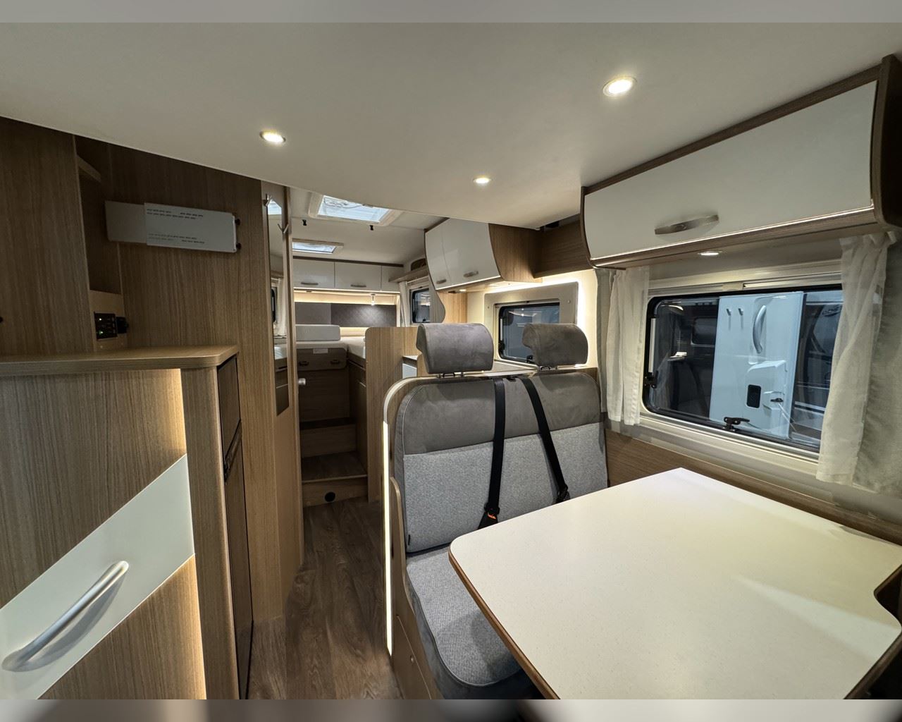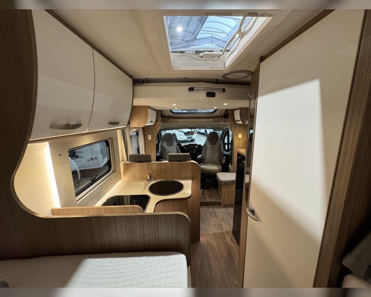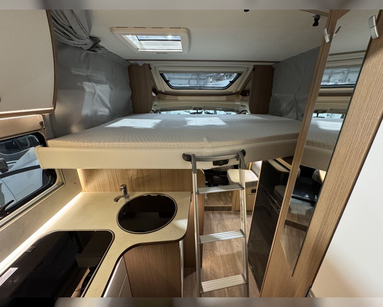 Kaupauki fylgir þessum bíl - 200W sólarsellupakki með ásetningu að verðmæti 136.000 kr. Bakkmyndavél, leiðsögukerfi, sólskyggni (markísa), hjólagrind, lestarlúga báðum megin, gluggi í hurð, aðskilin rúm með útdragi á milli, stór sjálfvirkur ísskápur, fellirúm í toppi, LED lýsing, cruise control, snúningsstólar, loftkæling, 16“ álfelgur o.fl. Lengd: 6,96 m. Breidd: 2,32 m. Hæð: 2,93 m.