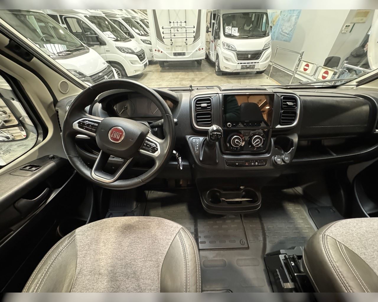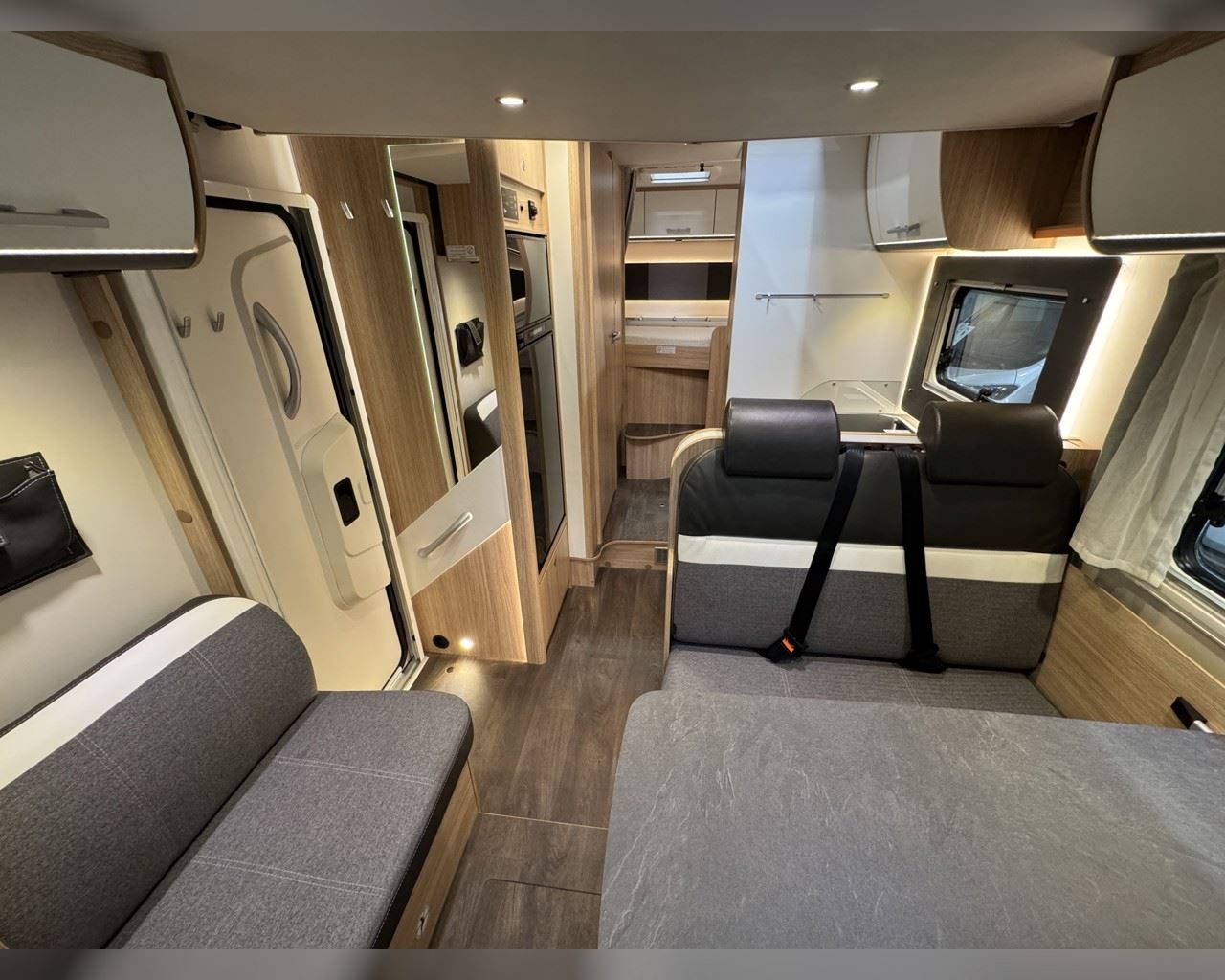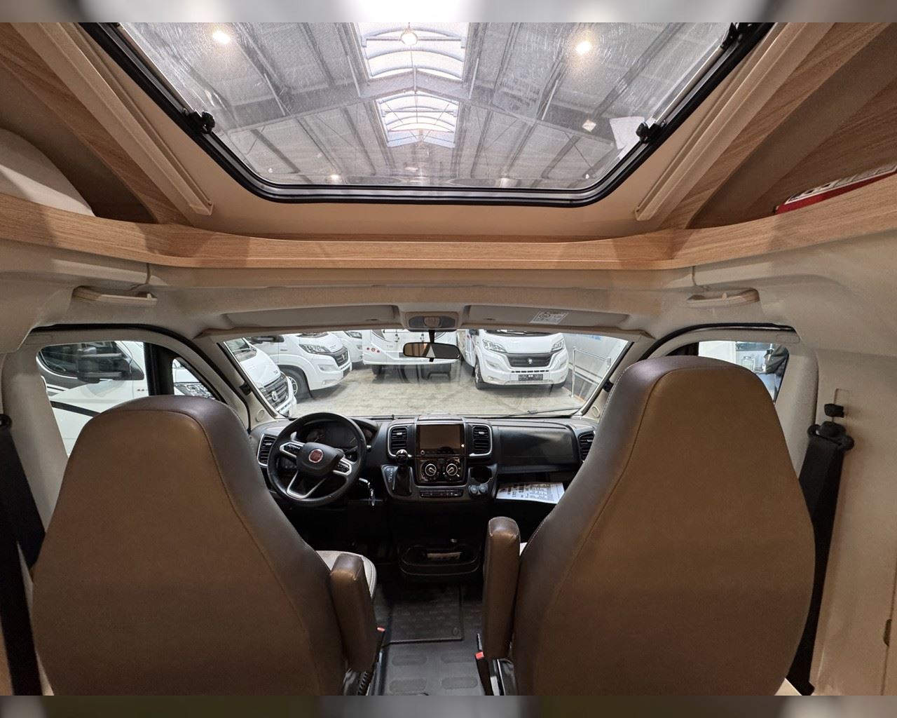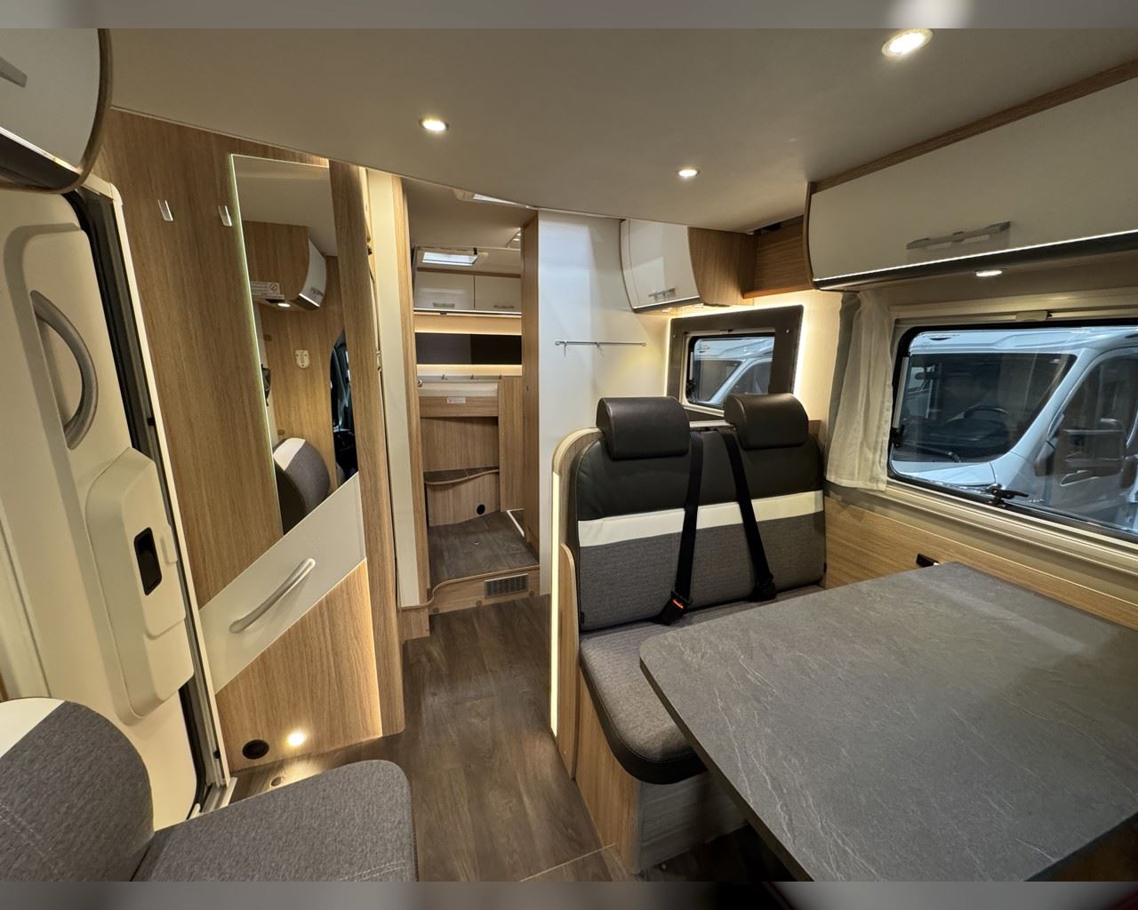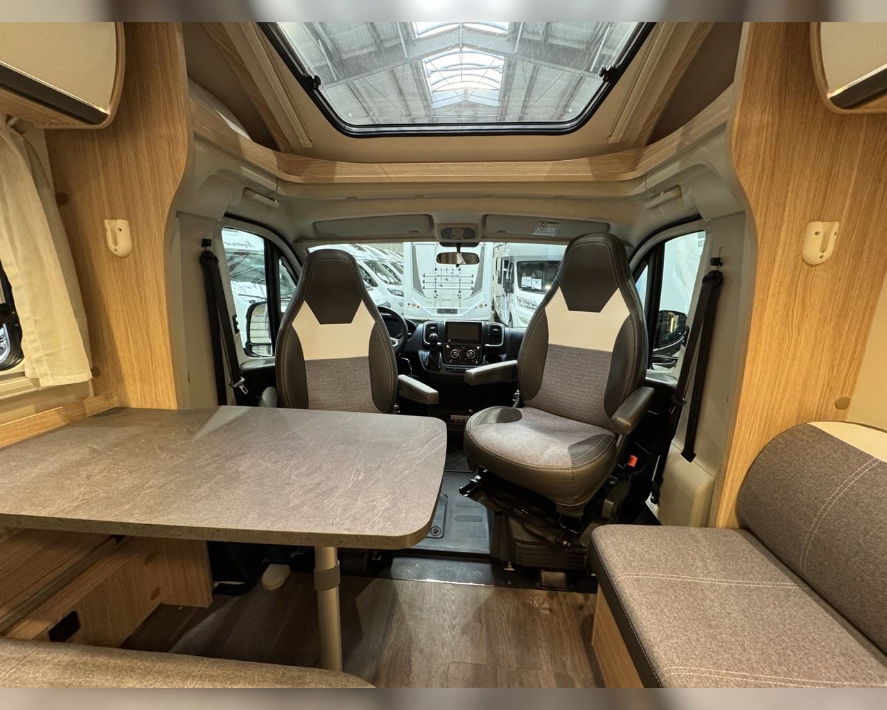 Kaupauki fylgir þessum bíl - 200W sólarsellupakki með ásetningu að verðmæti 136.000 kr. Trumatic Combi 6 KW (stóra miðstöðin), stór ísskápur, snúningsstólar (kapteinstólar), samlit áklæði á framsætum, aðskilin sturta og klósett, fellirúm fyrir ofan borðaðstöðu, rafdrifin trappa, stór geymsla undir rúmi með lestarlúgum beggja vegna, díóðulýsing (LED), flugnanet í hurð, hjólagrind fyrir 4 hjól, markísa. L.: 6,99 m. Br.: 2,33 m. H.: 2,9 m.