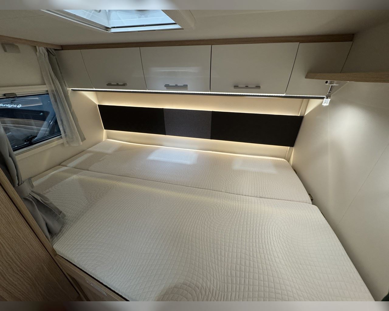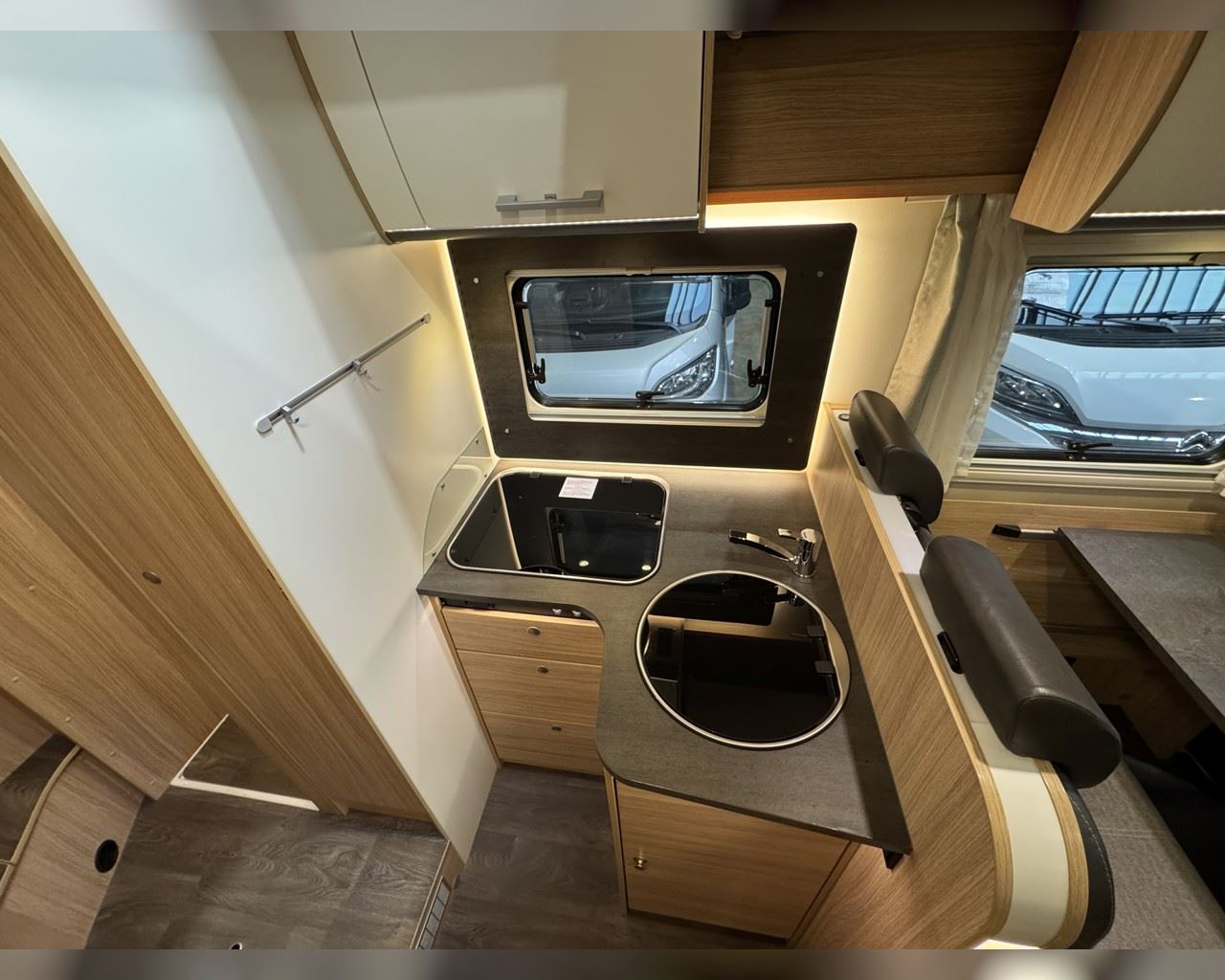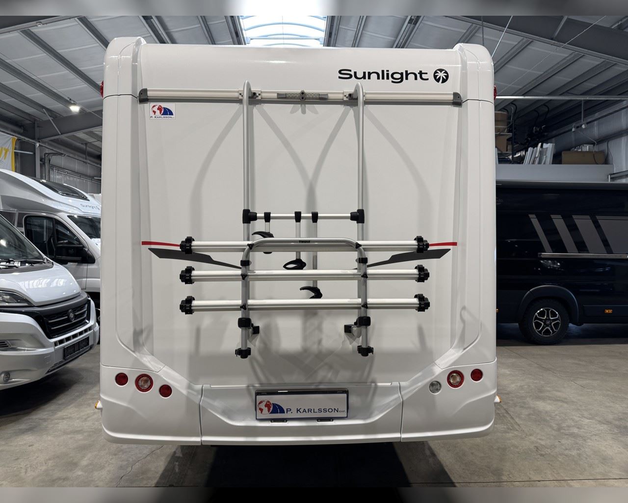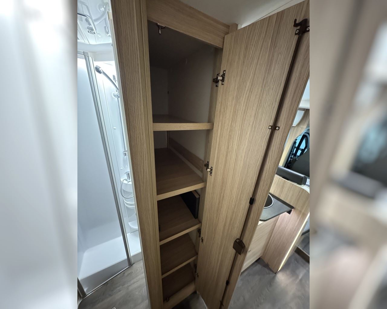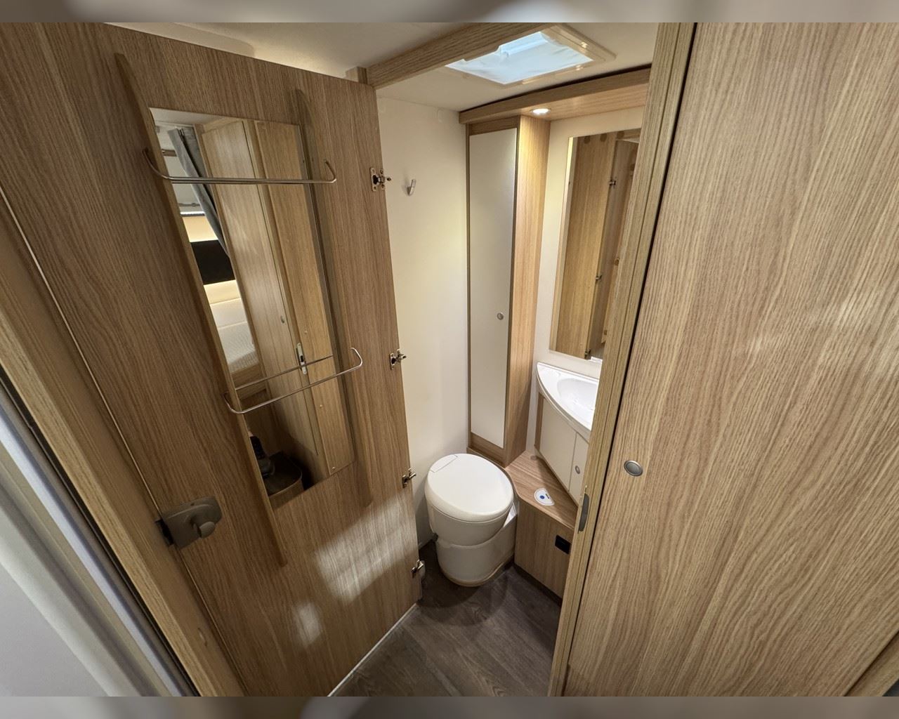 Kaupauki fylgir þessum bíl - 200W sólarsellupakki með ásetningu að verðmæti 136.000 kr. Trumatic Combi 6 KW (stóra miðstöðin), stór ísskápur, snúningsstólar (kapteinstólar), samlit áklæði á framsætum, aðskilin sturta og klósett, fellirúm fyrir ofan borðaðstöðu, rafdrifin trappa, stór geymsla undir rúmi með lestarlúgum beggja vegna, díóðulýsing (LED), flugnanet í hurð, hjólagrind fyrir 4 hjól, markísa. L.: 6,99 m. Br.: 2,33 m. H.: 2,9 m.