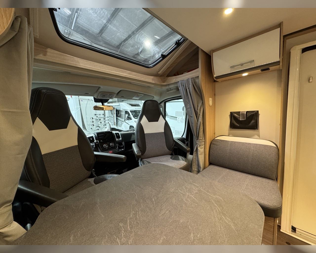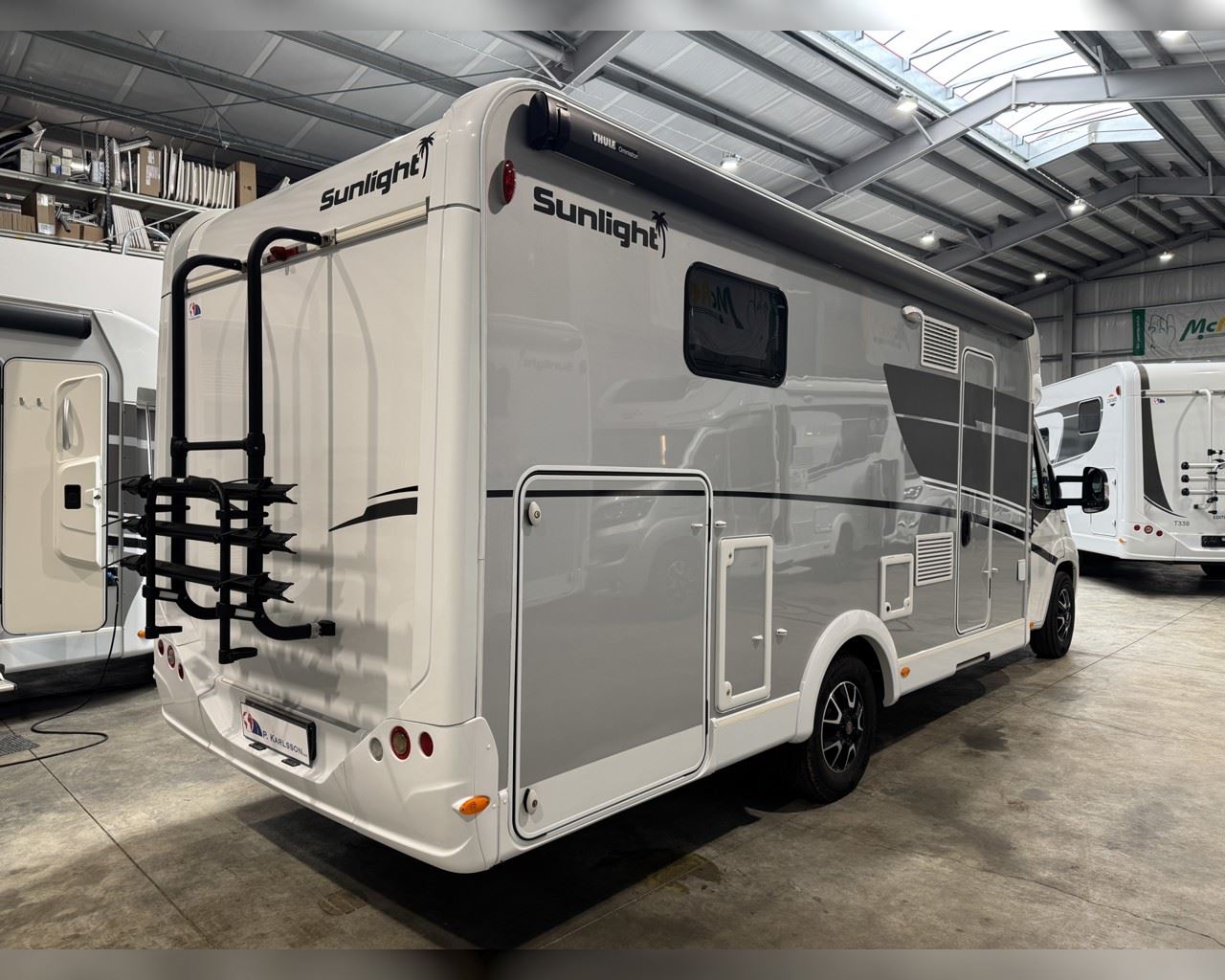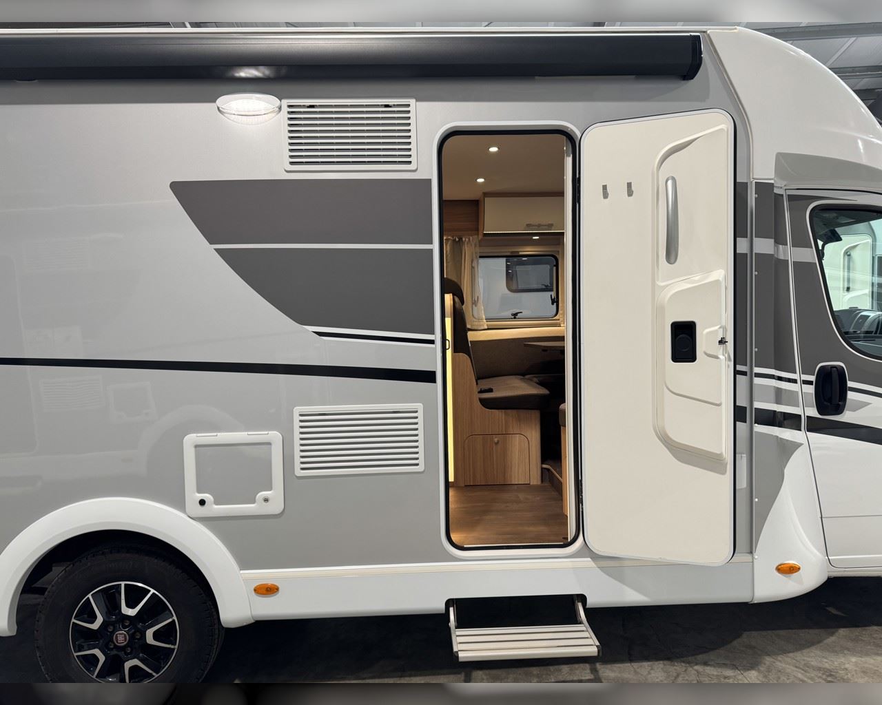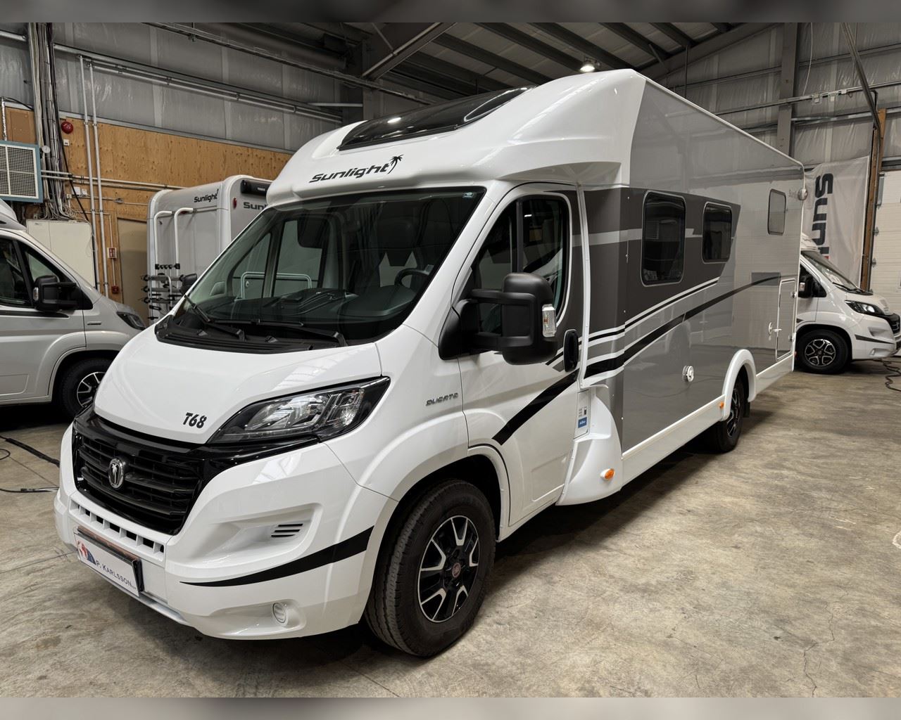 Kaupauki fylgir þessum bíl - 200W sólarsellupakki með ásetningu að verðmæti 136.000 kr. Sjálfskiptur (9-þrepa þýð skipting). Bakkmyndavél, leiðsögukerfi, sólskyggni (markísa), hjólagrind fyrir 3 hjól, lestarlúgur báðu megin, aðskilin rúm með útdragi á milli, stór sjálfvirkur ísskápur, fellirúm í toppi, LED lýsing, cruise control, snúningsstólar, loftkæling, 16“ álfelgur, Truma Combi 6 (stóra miðstöðin) o.fl. Lengd: 7,40 m. Breidd: 2,32 m. Hæð: 2,93 m.