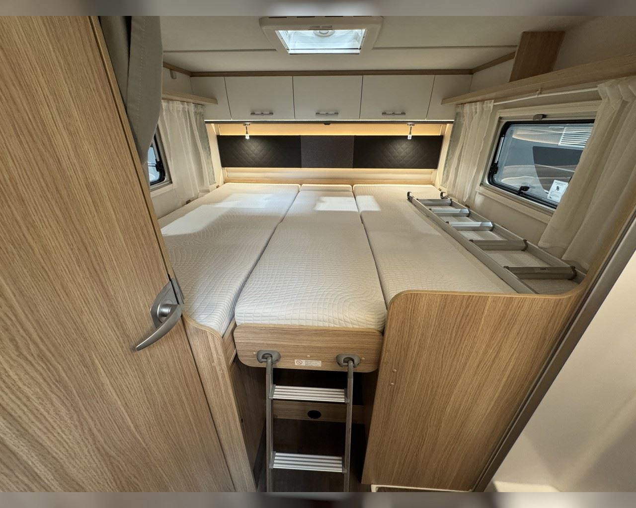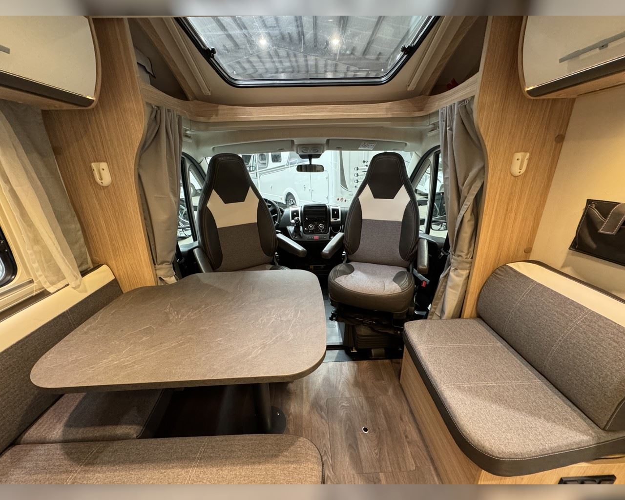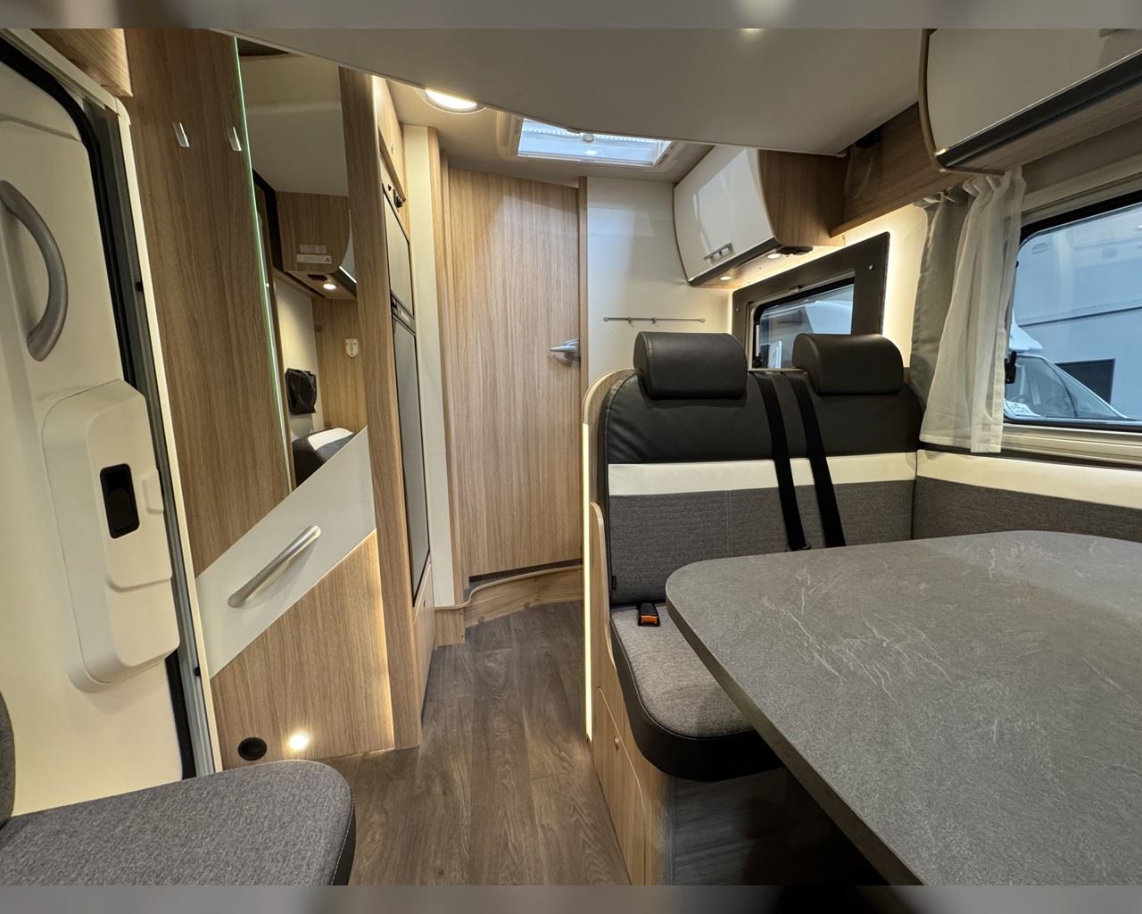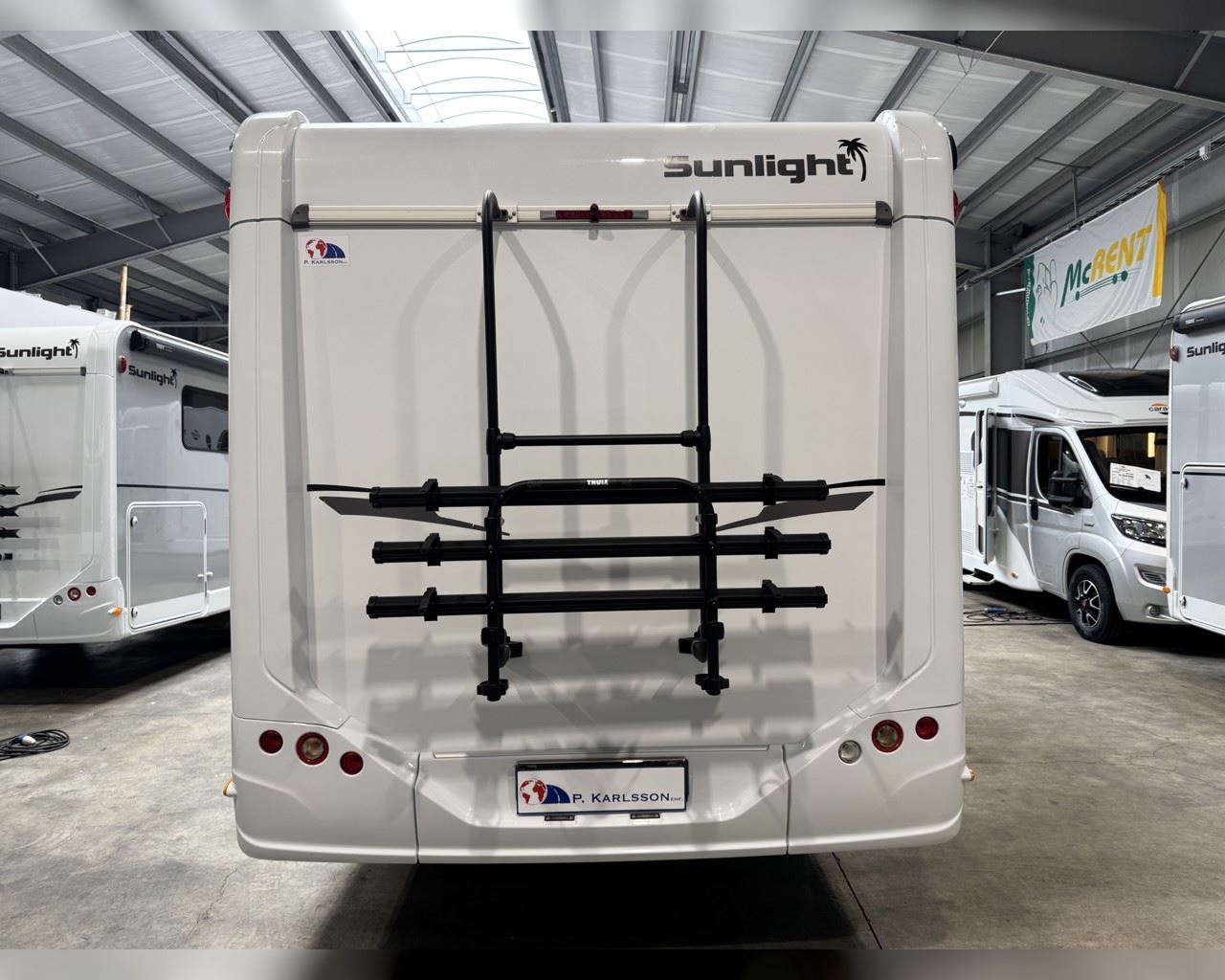 Kaupauki fylgir þessum bíl - 200W sólarsellupakki með ásetningu að verðmæti 136.000 kr. Sjálfskiptur (9-þrepa þýð skipting). Bakkmyndavél, leiðsögukerfi, sólskyggni (markísa), hjólagrind fyrir 3 hjól, lestarlúgur báðu megin, aðskilin rúm með útdragi á milli, stór sjálfvirkur ísskápur, fellirúm í toppi, LED lýsing, cruise control, snúningsstólar, loftkæling, 16“ álfelgur, Truma Combi 6 (stóra miðstöðin) o.fl. Lengd: 7,40 m. Breidd: 2,32 m. Hæð: 2,93 m.