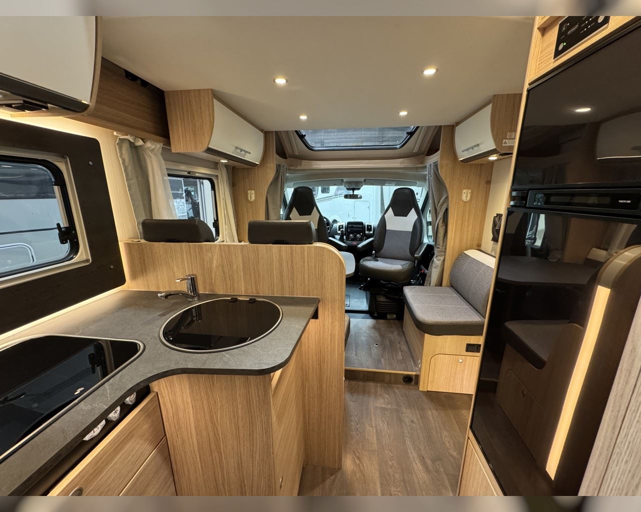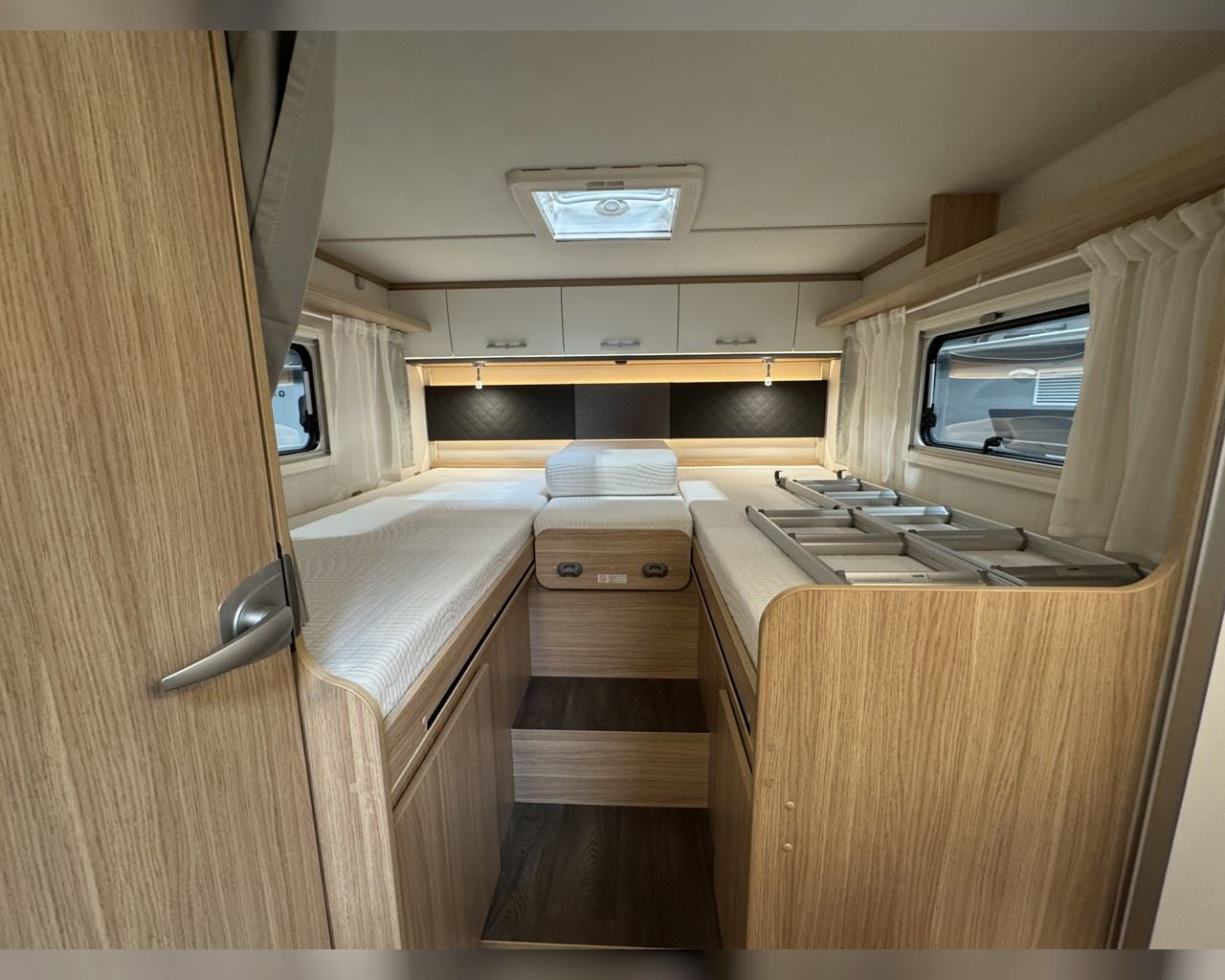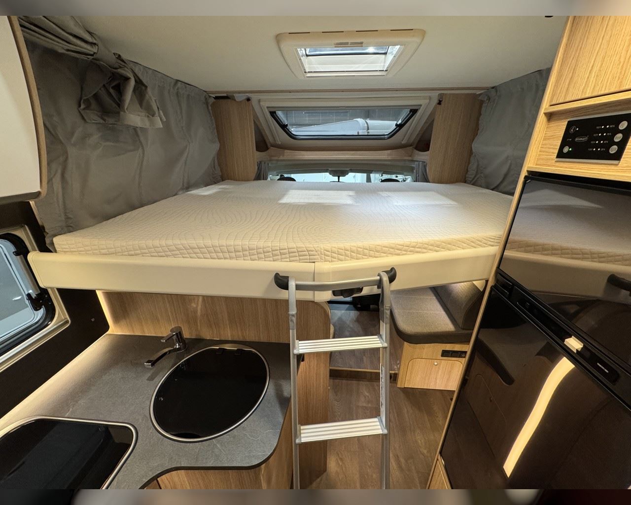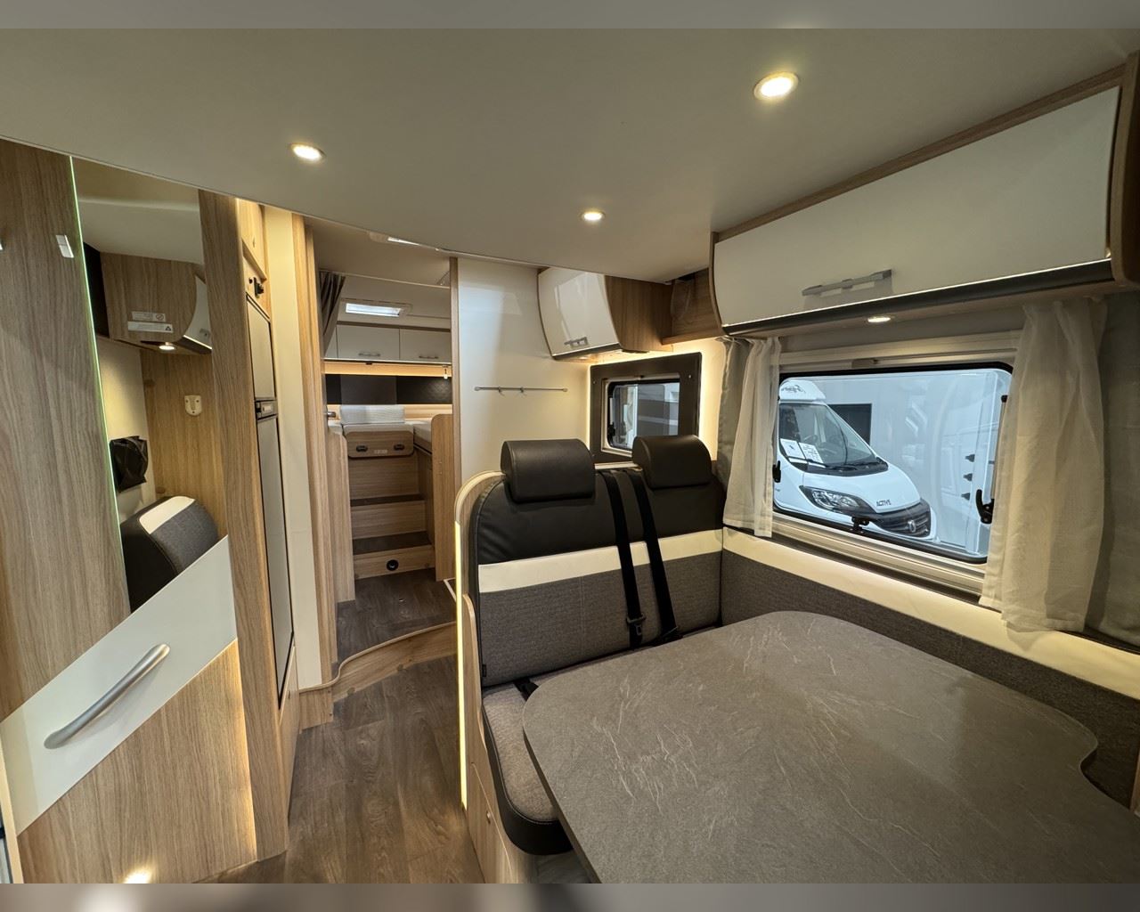 Kaupauki fylgir þessum bíl - 200W sólarsellupakki með ásetningu að verðmæti 136.000 kr. Sjálfskiptur (9-þrepa þýð skipting). Bakkmyndavél, leiðsögukerfi, sólskyggni (markísa), hjólagrind fyrir 3 hjól, lestarlúgur báðu megin, aðskilin rúm með útdragi á milli, stór sjálfvirkur ísskápur, fellirúm í toppi, LED lýsing, cruise control, snúningsstólar, loftkæling, 16“ álfelgur, Truma Combi 6 (stóra miðstöðin) o.fl. Lengd: 7,40 m. Breidd: 2,32 m. Hæð: 2,93 m.