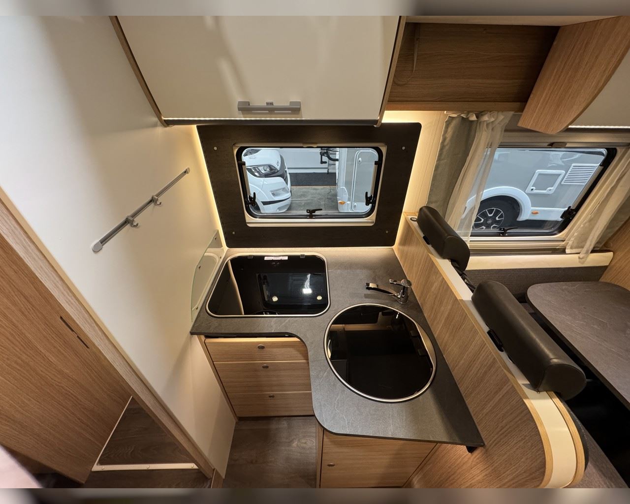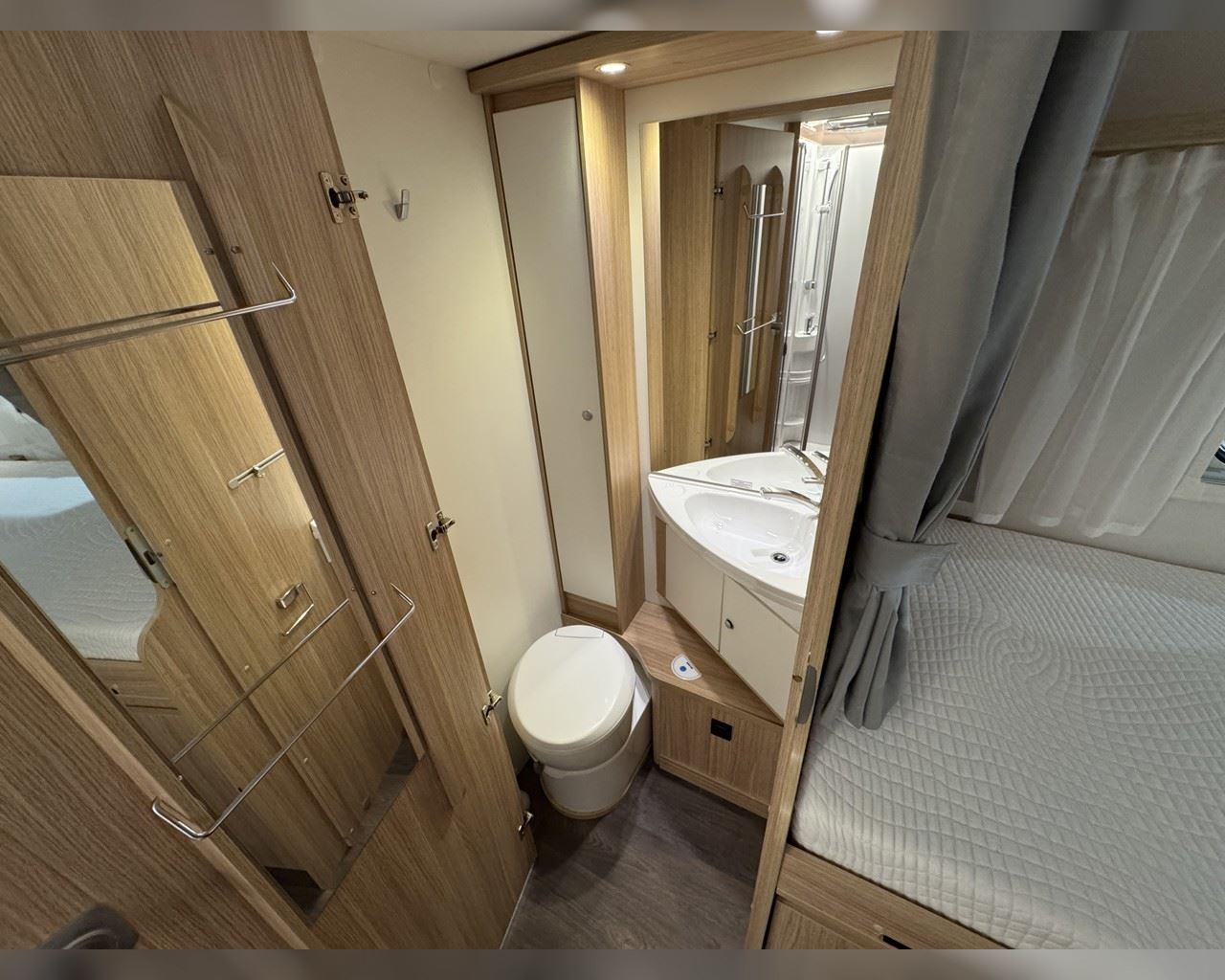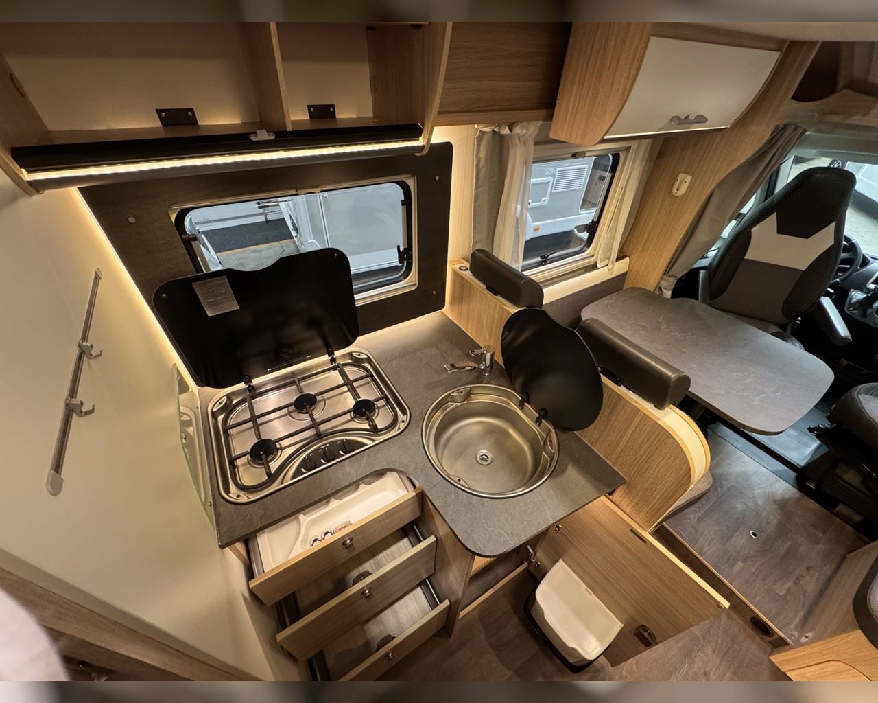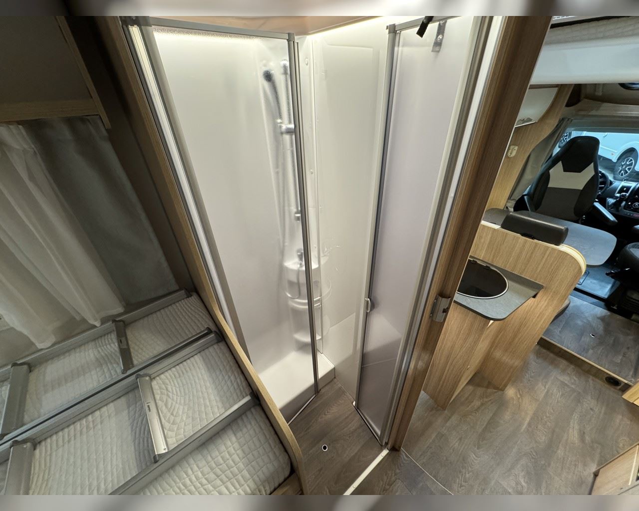 Kaupauki fylgir þessum bíl - 200W sólarsellupakki með ásetningu að verðmæti 136.000 kr. Sjálfskiptur (9-þrepa þýð skipting). Bakkmyndavél, leiðsögukerfi, sólskyggni (markísa), hjólagrind fyrir 3 hjól, lestarlúgur báðu megin, aðskilin rúm með útdragi á milli, stór sjálfvirkur ísskápur, fellirúm í toppi, LED lýsing, cruise control, snúningsstólar, loftkæling, 16“ álfelgur, Truma Combi 6 (stóra miðstöðin) o.fl. Lengd: 7,40 m. Breidd: 2,32 m. Hæð: 2,93 m.