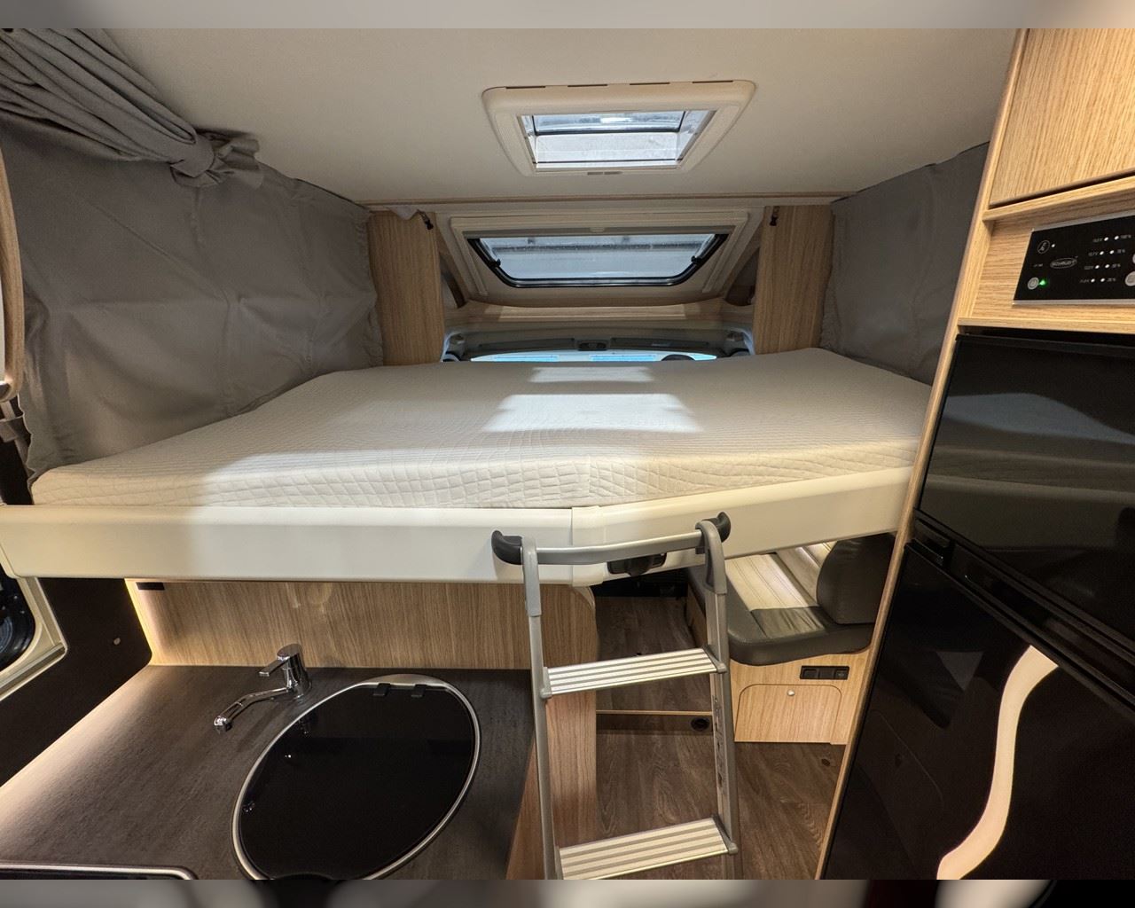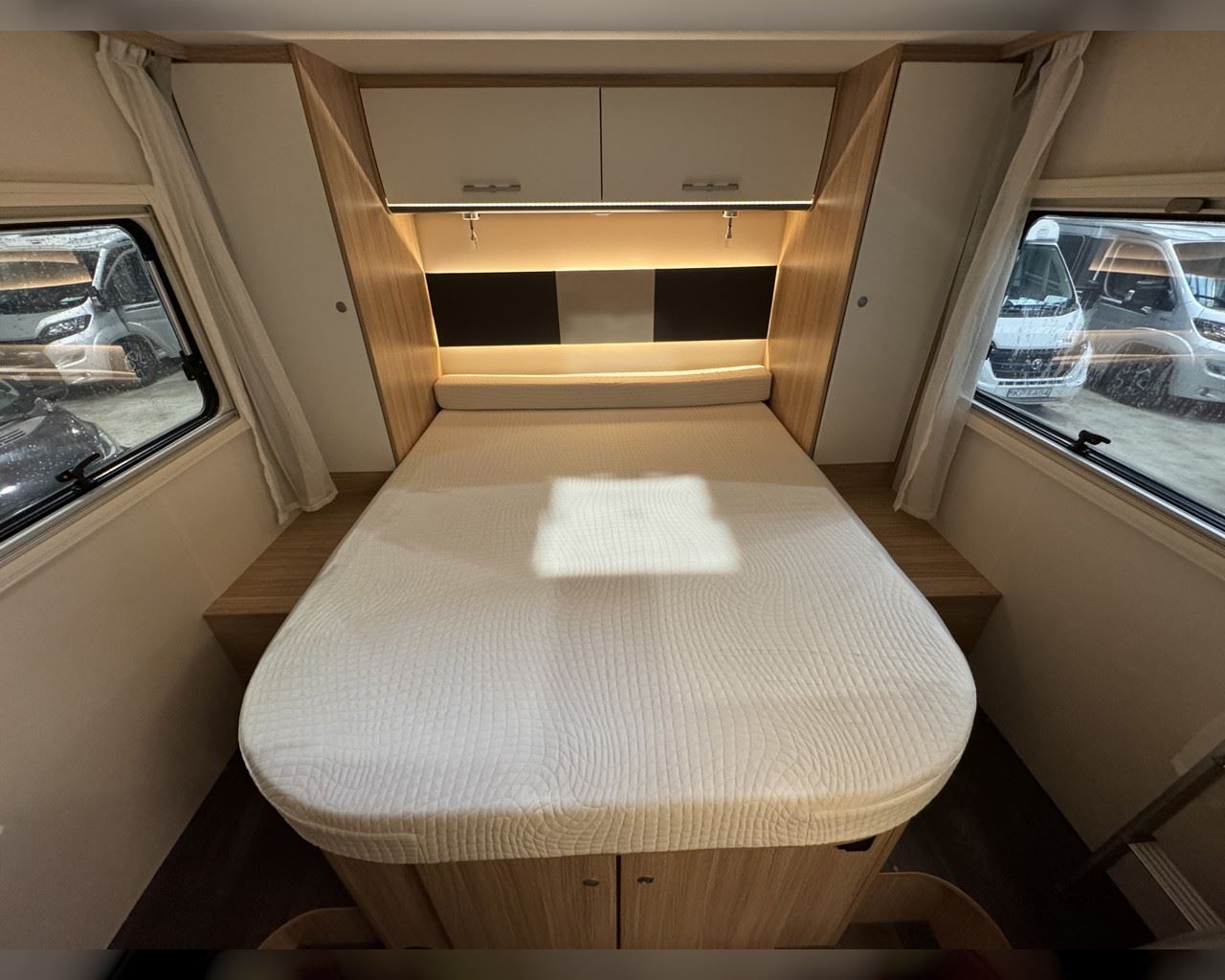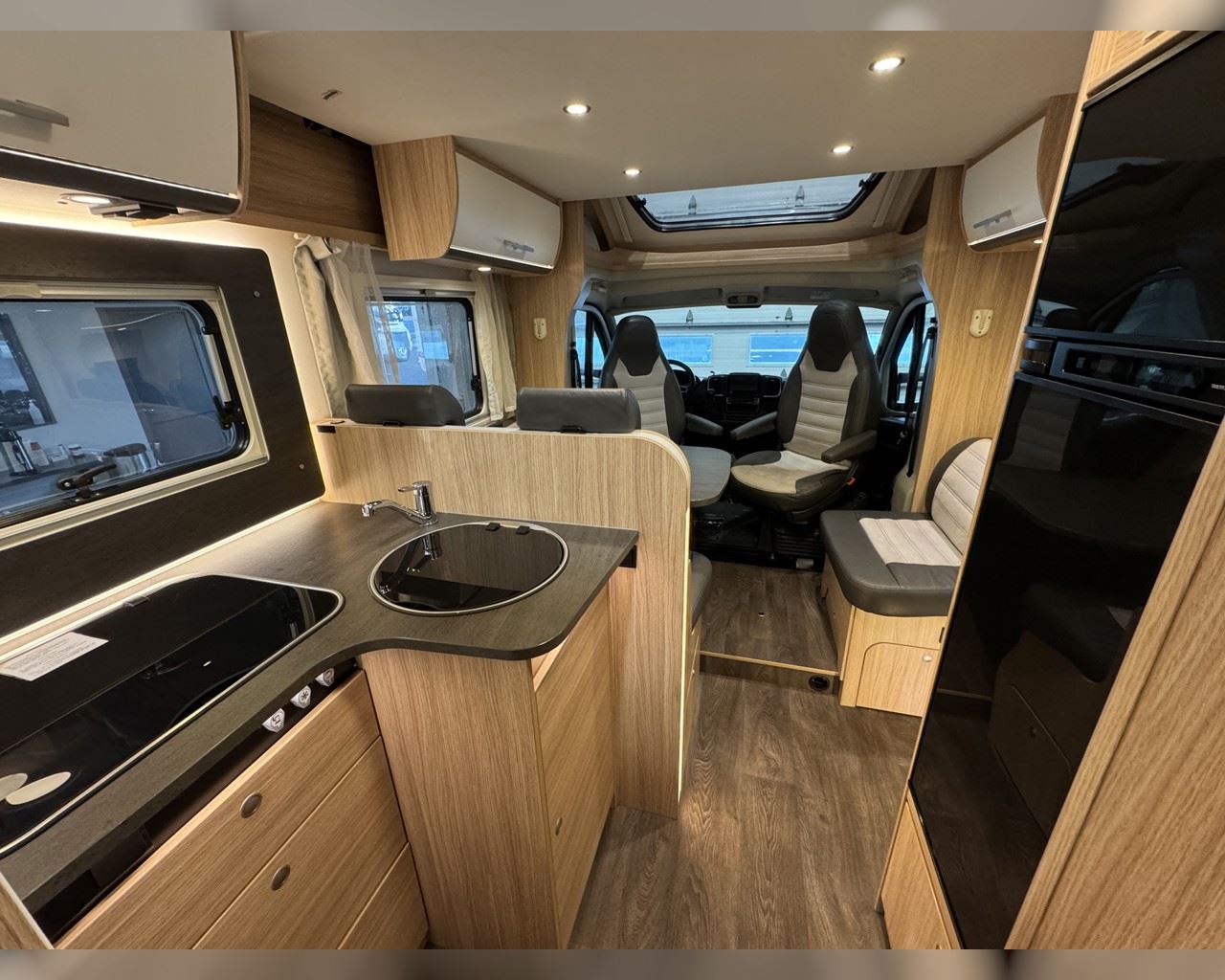 Kaupauki fylgir þessum bíl - 200W sólarsellupakki með ásetningu að verðmæti 136.000 kr. Bakkmyndavél, leiðsögukerfi, Satellite system SAT 65, sjónvarp, stöðuleikatjakkar að aftan, stór sjálfvirkur ísskápur, sólskyggni (markísa), hjólagrind fyrir 3 hjól, lestarlúgur báðu megin, Truma Combi 6 (stóra miðstöðin), fellirúm í toppi, cruise control, snúningsstólar, loftkæling, 16“ álfelgur o.fl. Lengd: 7,40 m. Breidd: 2,32 m. Hæð: 2,93 m.