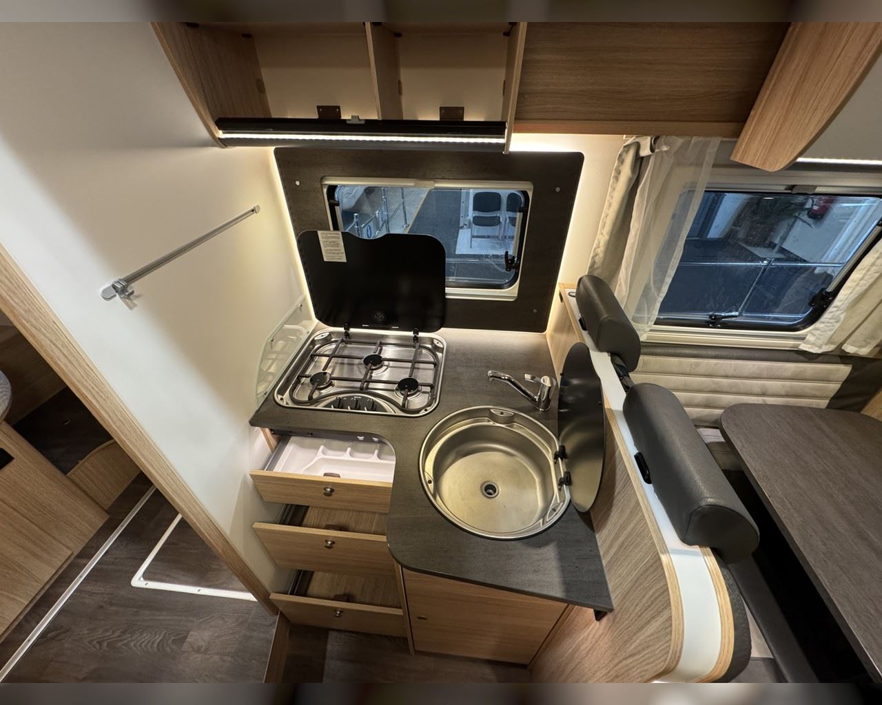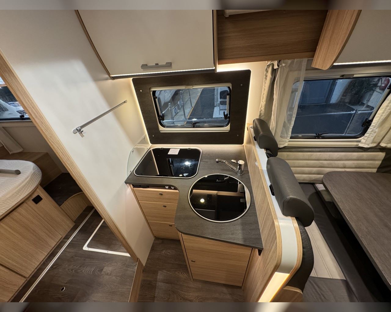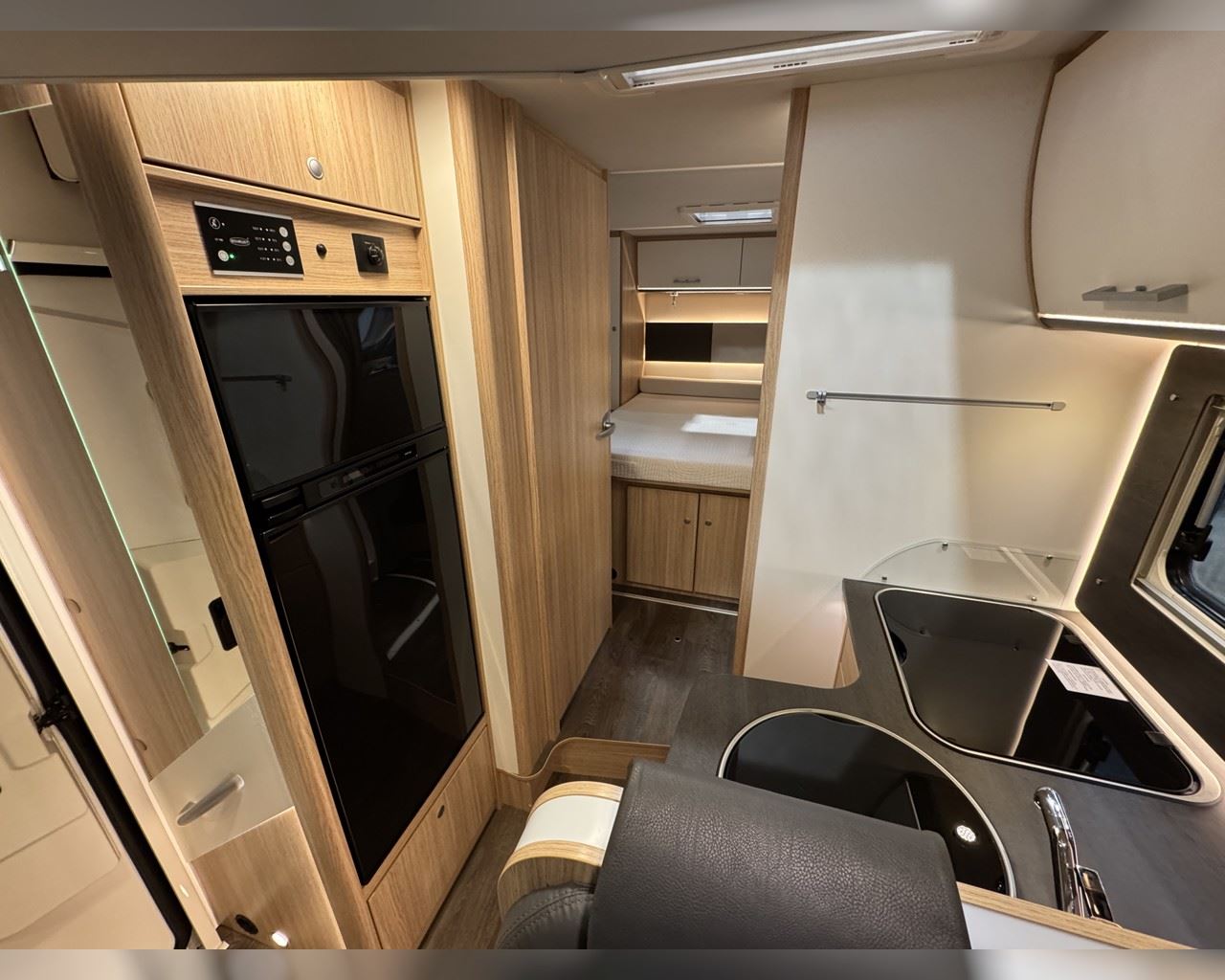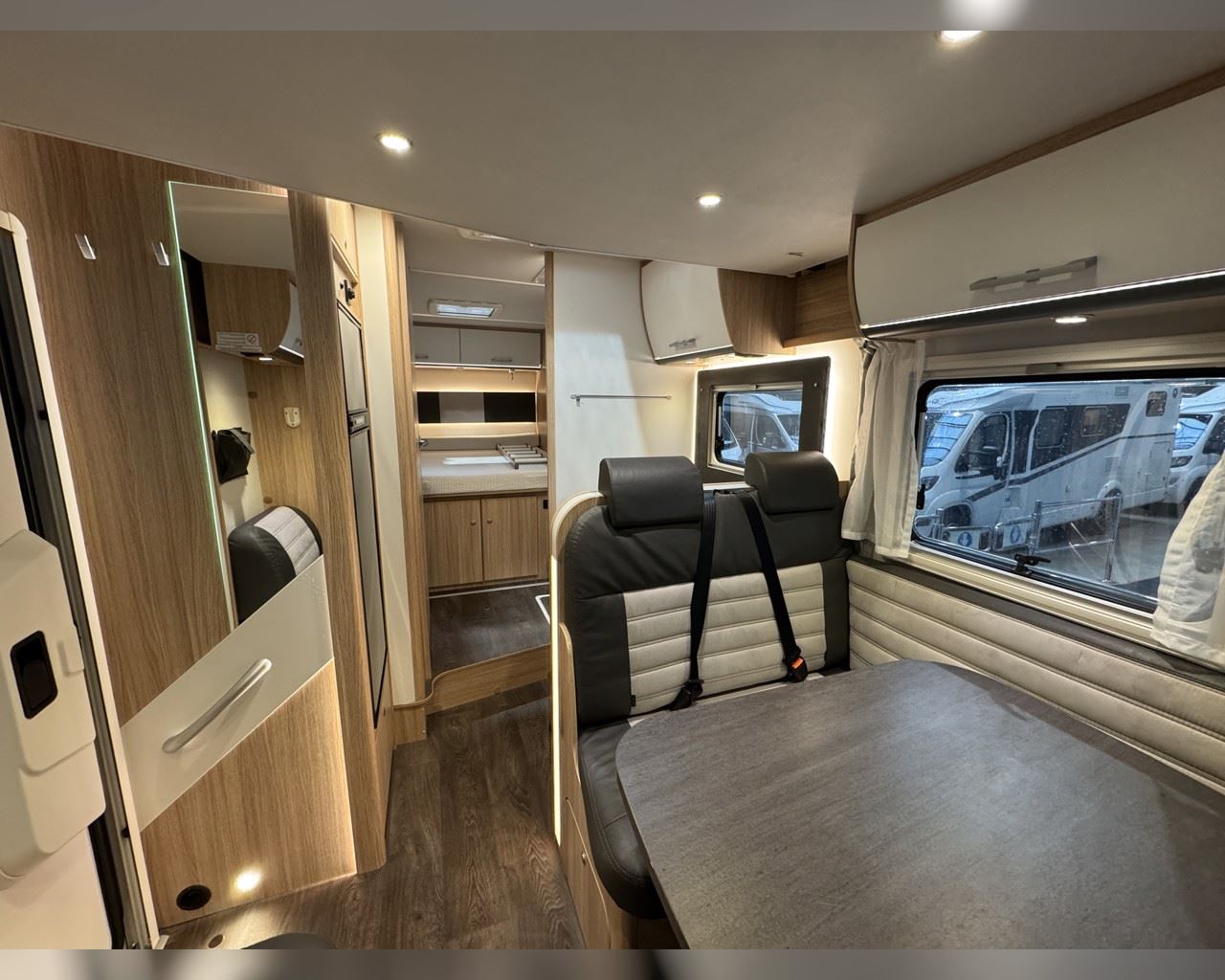 Kaupauki fylgir þessum bíl - 200W sólarsellupakki með ásetningu að verðmæti 136.000 kr. Bakkmyndavél, leiðsögukerfi, Satellite system SAT 65, sjónvarp, stöðuleikatjakkar að aftan, stór sjálfvirkur ísskápur, sólskyggni (markísa), hjólagrind fyrir 3 hjól, lestarlúgur báðu megin, Truma Combi 6 (stóra miðstöðin), fellirúm í toppi, cruise control, snúningsstólar, loftkæling, 16“ álfelgur o.fl. Lengd: 7,40 m. Breidd: 2,32 m. Hæð: 2,93 m.