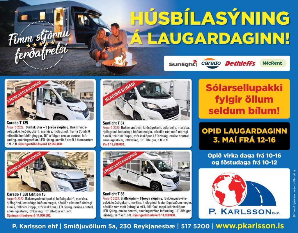 Húsbílasýning verður hjá okkur, laugardaginn 3. maí. Stórgóð sýningartilboðsverð á völdum bílum, sólarsellupakki fylgir einnig öllum...